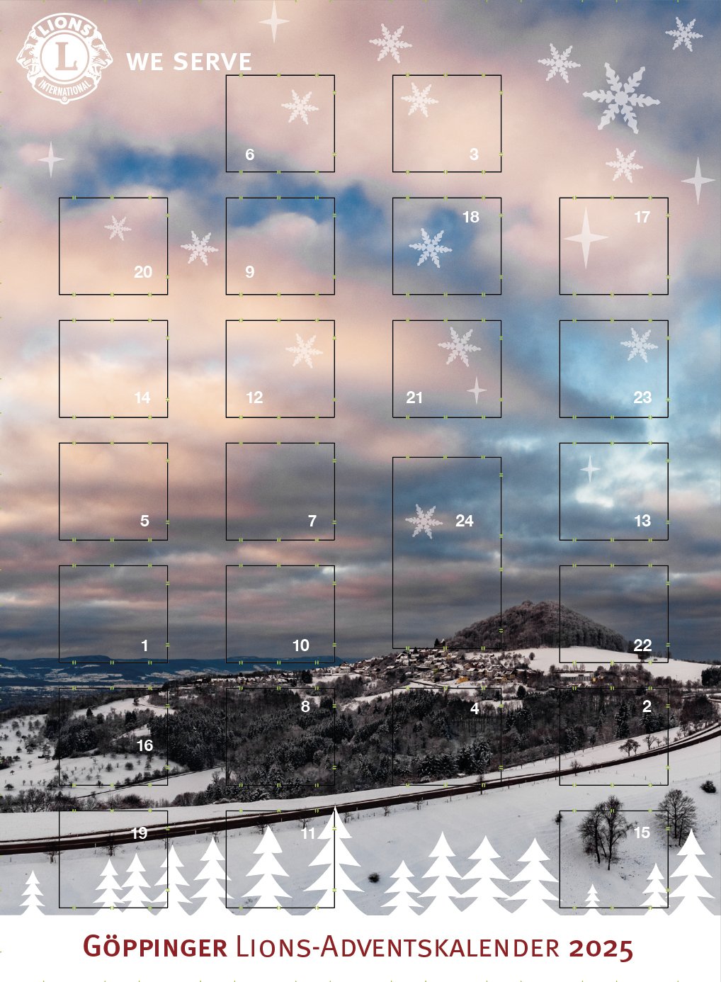 Mit dem Göppinger-Lions-Adventskalender 2025 tun Sie etwas für den guten Zweck und haben nebenbei noch tolle Gewinnchancen bei der täglichen Verlosung in der Adventszeit.